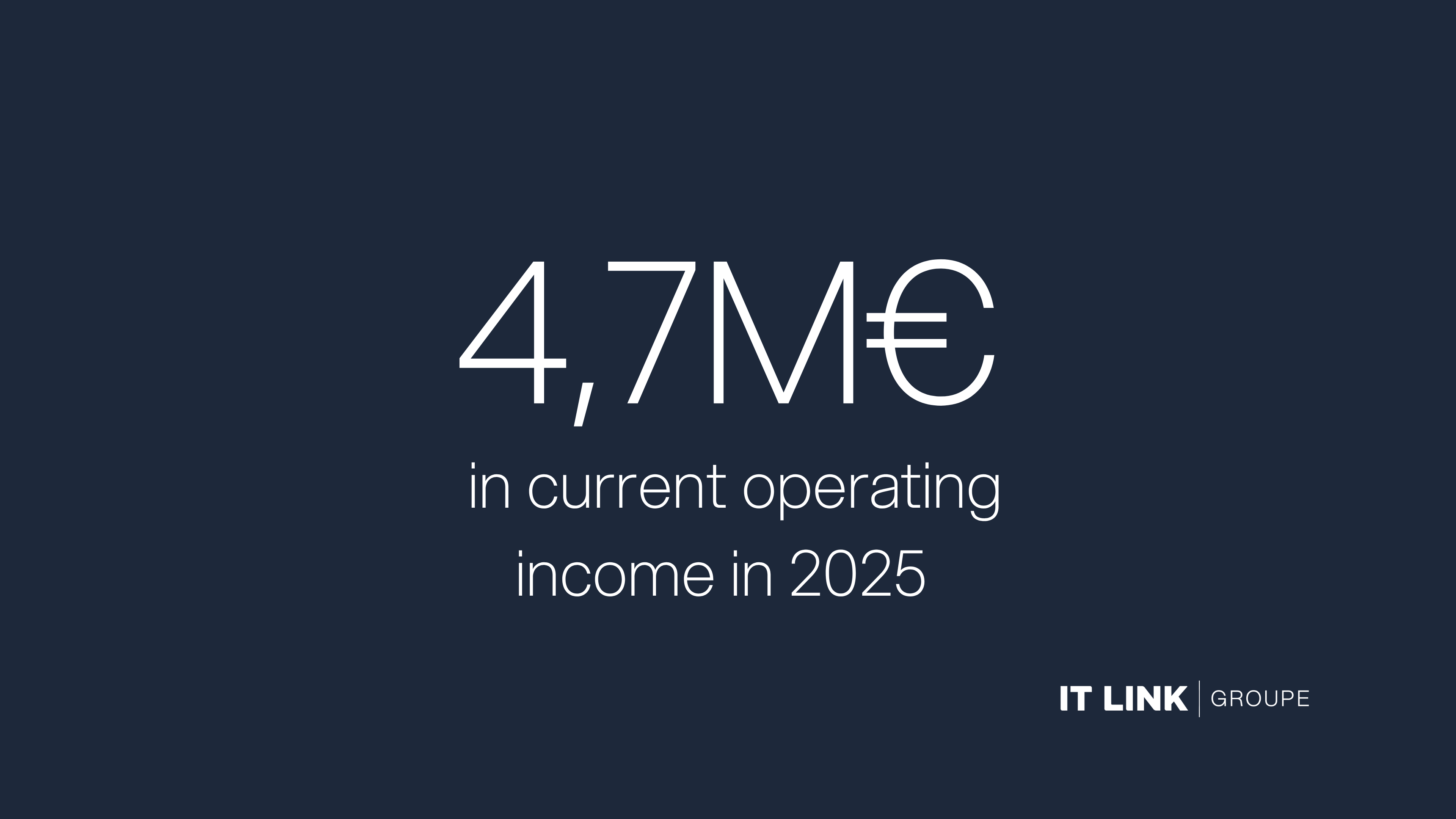 The IT Link Group's net cash flow at 31 December 2025 remained largely positive at €3.8 million, compared to €5.2 million at the end of 2024. The delay observed is mainly linked to a technical constraint in the billing process that led to a delay in payment of services in the second half of the year by a major customer of the Group. This claim was settled at the very beginning of 2026 for an amount of €1.7 million. Over the year, the Group generated €2 million in cash flow in line with business growth.